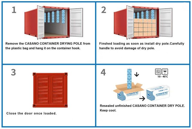 Container desiccant strip commonly used in shipping containers. They absorb moisture generated during ocean transport or storage, reducing humidity levels inside the container to ensure cargo remains in optimal condition throughout transit.